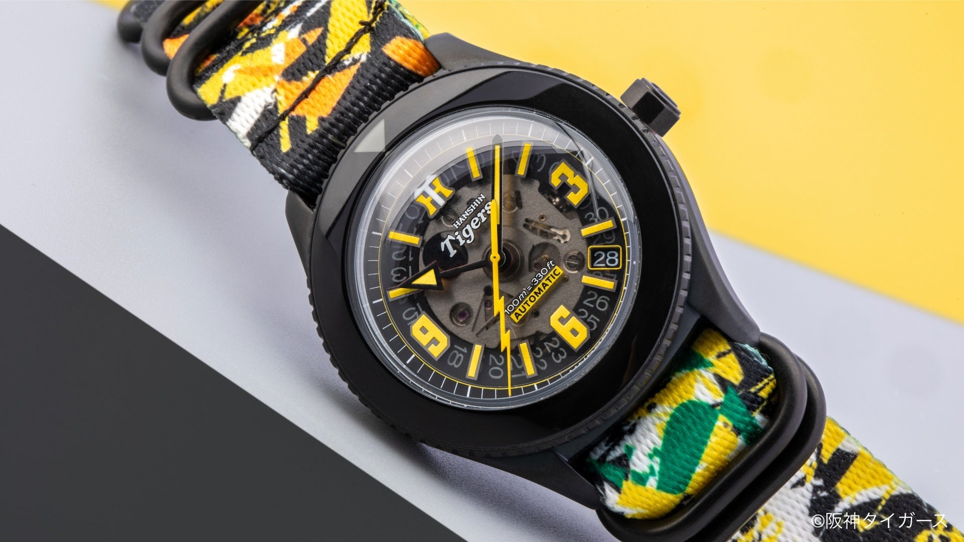 夏の恒例イベント「ウル虎」10周年を記念した2022年限定モデル。「ウル虎」のユニフォームをモチーフとしたデザインで、鮮やかな色合いが特徴の防水100M機械式ウォッチです。