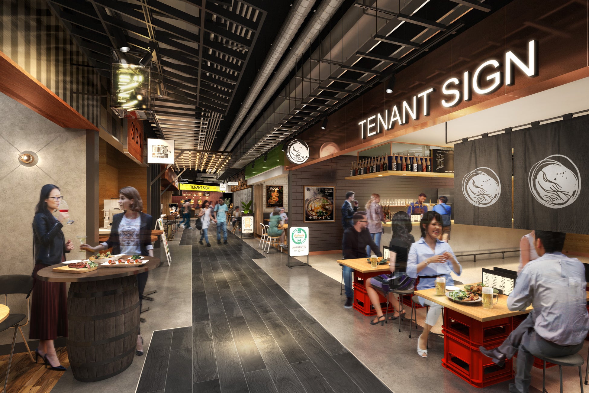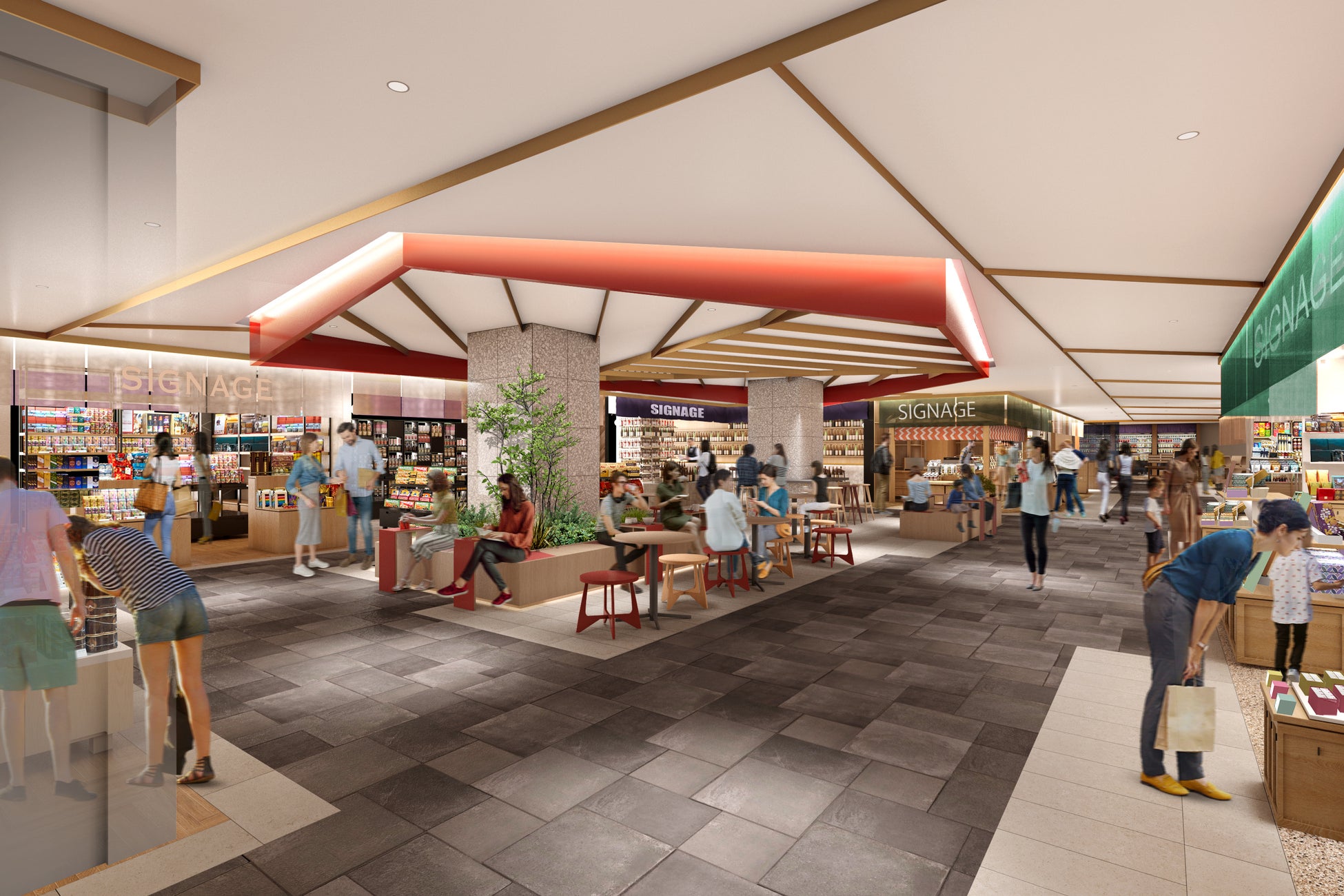商業コンサルティング以外には「日本の良さを発信する場所」をテーマに施設全体の共通環境デザインや、内装監理を担当したほか、2Fフロアロゴ「Feel JAPAN Journey」、地域情報発信スペース「@JP Cafe」、“大人のたまり場”ゾーン「うめよこ」のネーミング及びロゴ制作を手掛けました。