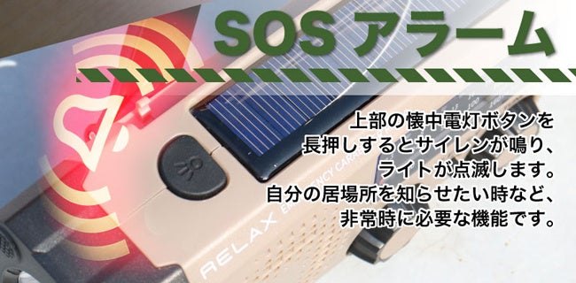 上部のSOSスイッチを長押しすると、サイレンが鳴り、ライトが点滅します。