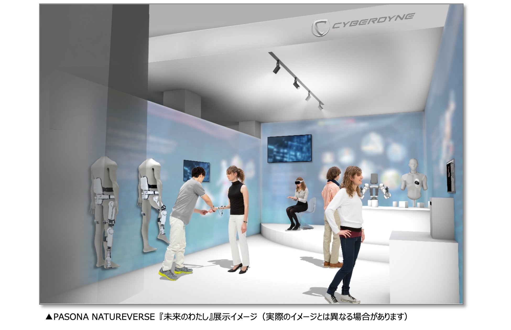 パビリオン「PASONA NATUREVERSE」では、「からだ・こころ・きずな」をテーマに様々な展示を展開。「からだゾーン」における展示の一つとして、パビリオンの展示協賛パートナーであるCYBERDYNEと共同で、『未来のわたし』展示を行ってまいります。そこで表現するのは、人とサイバー・フィジカル空間が融合し、人の身体能力が拡張されることで、場所や空間の制限を受けることなく、誰もが生涯にわたって活躍できる未来社会です。