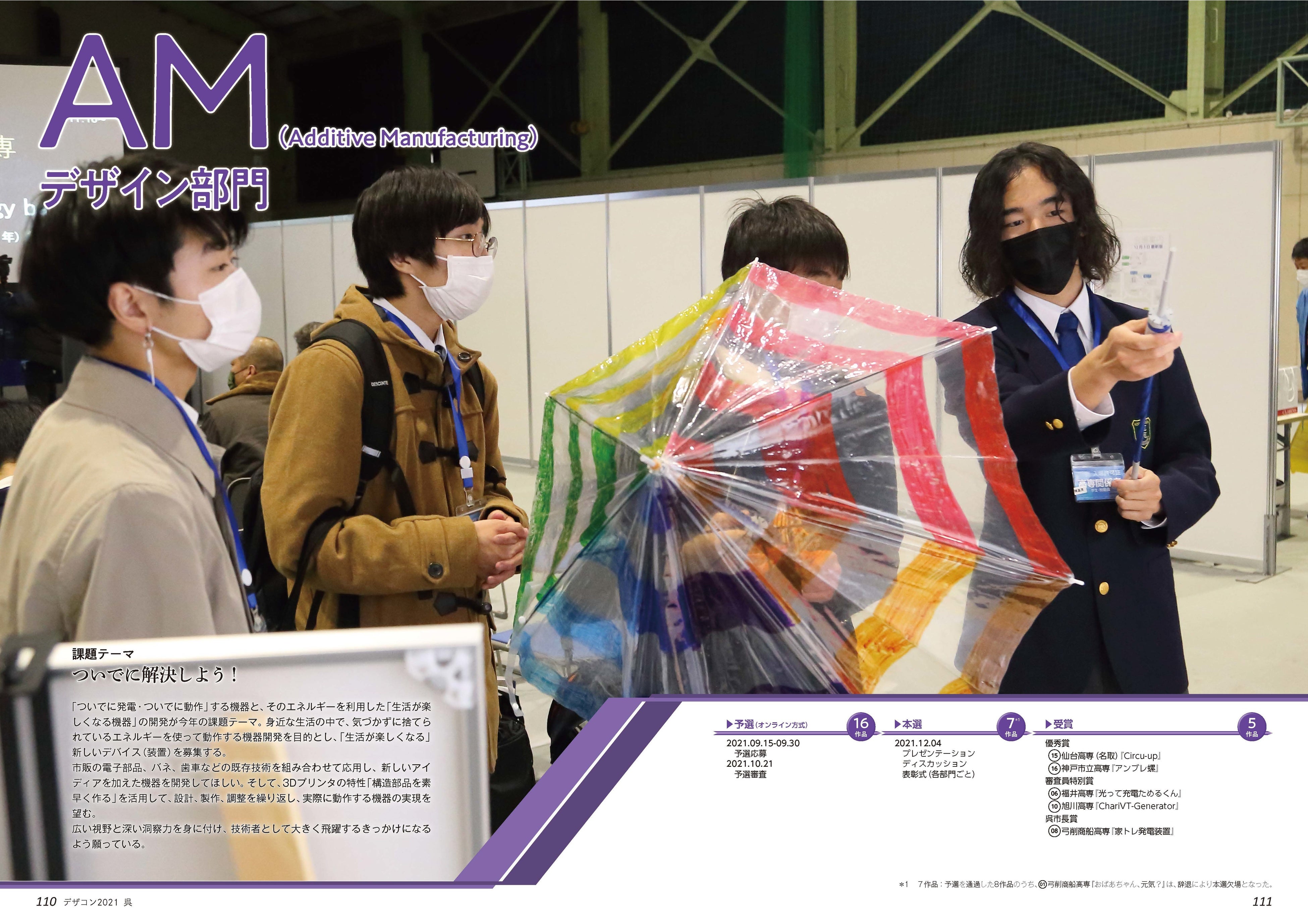 3Dプリンタの造形技術を活用した「ついでに発電・動作」する機器と、そのエネルギーを利用した「生活が楽しくなる」機器の開発が課題。3Dプリンタの活用方法や、作品が意図どおりに稼働するかが問われた。全国から応募された16作品から入賞作品が決定するまでの全審査過程を記録する。