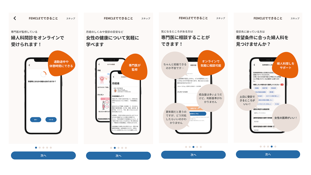 リンケージでは、企業の女性従業員に対し、月経に伴う症状や更年期障害といった女性特有の健康課題を改善へ導く法人向け女性ヘルスケアサービス「FEMCLE(フェムクル)」などを展開しています。秘匿性を担保した上でWeb上の問診で現状に「きづく」機会を提供し、E-learningやチャット相談、医療機関までつなげるサポートをするサービスです。