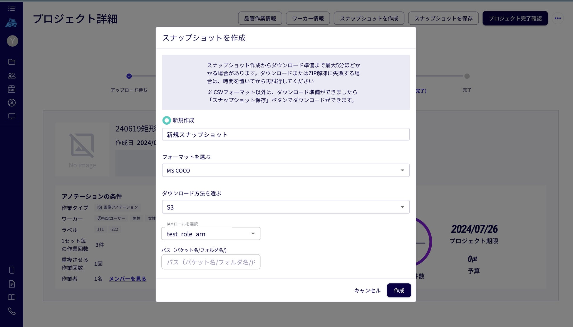 また、アノテーションしたデータもお客様のS3バケットに直接ダウンロードできるようになっており、同様にローカルへのダウンロードができないほどの大容量データを取得をできる機能も提供しております。