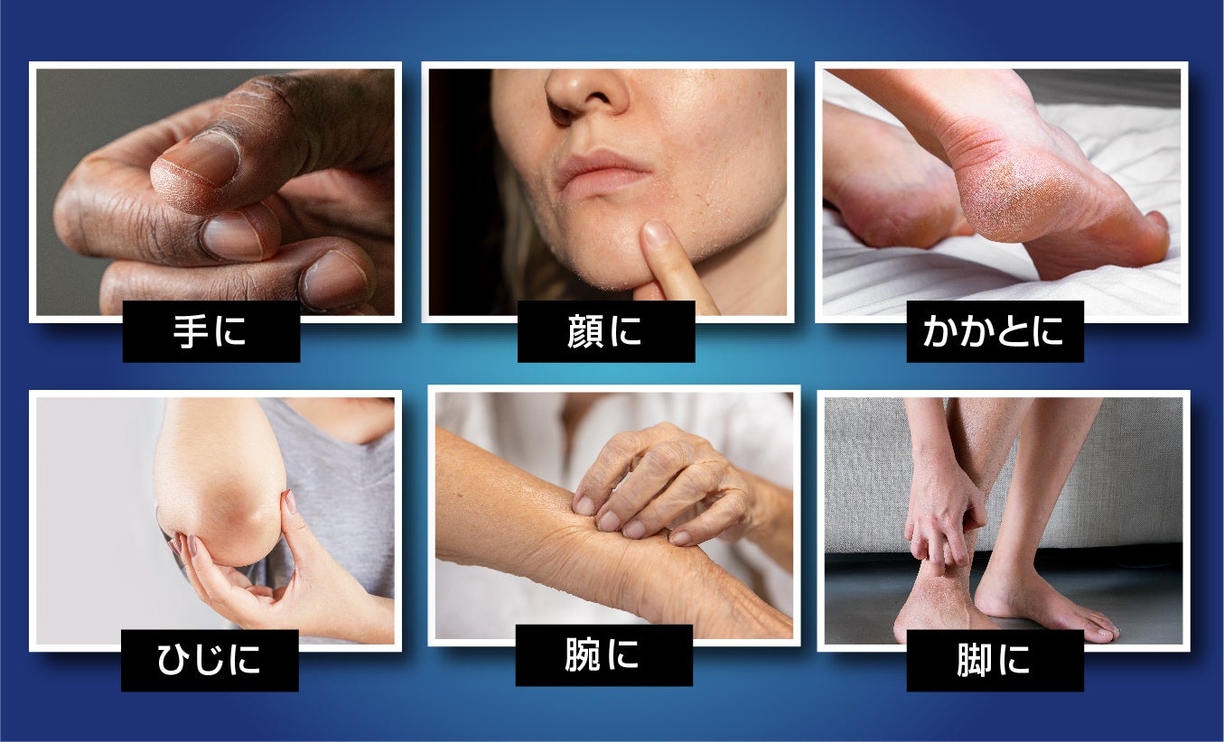 手や顔、腕、ひざ、かかとなど、乾燥や外的刺激による肌荒れが気になる箇所どこでも使用可能。