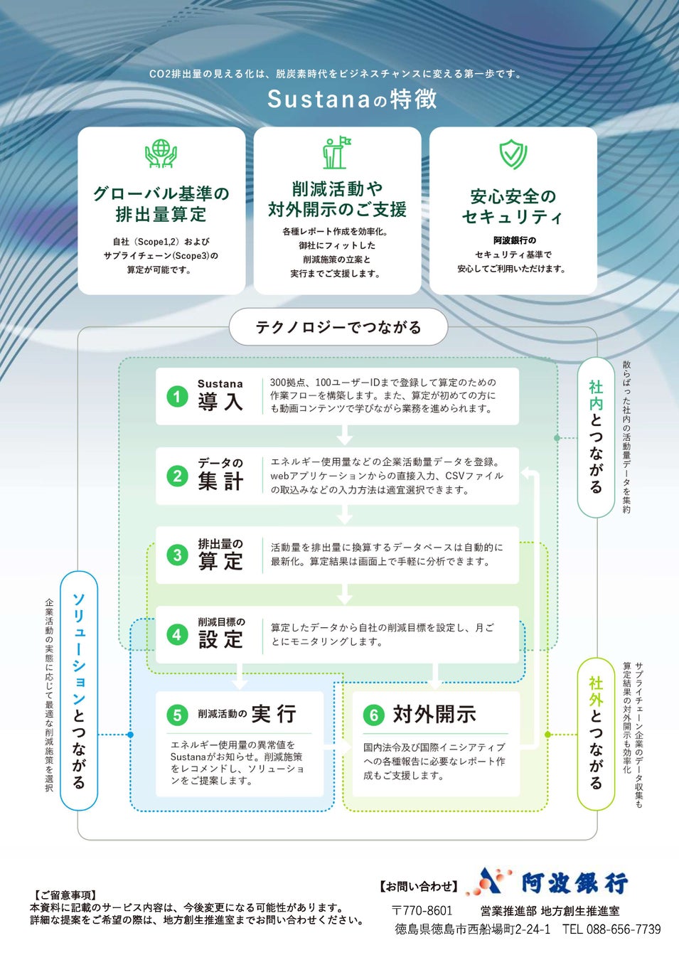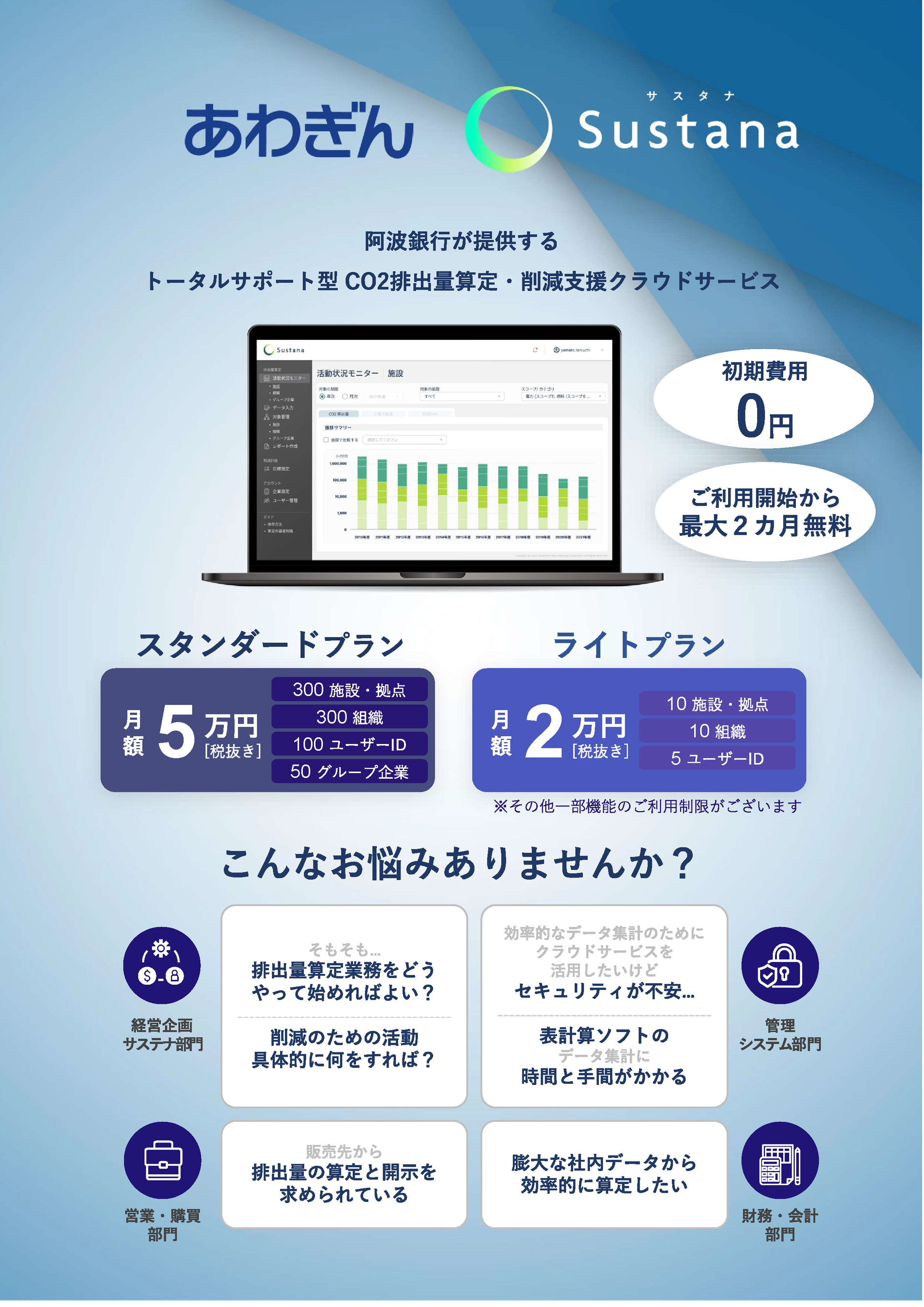 《阿波銀行》GHG排出量算定・削減支援クラウドサービス「あわぎんSustana」の取扱開始について