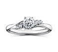緩やかで細身のウェーブがフェミニンな印象のエンゲージリング。サイドのメレダイヤが