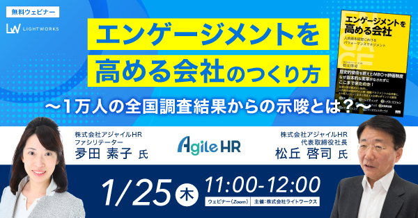 【1月25日(木)無料ウェビナー開催】「エンゲージメントを高める会社」のつくり方 ~1万人の全国調査結果からの示唆とは?~