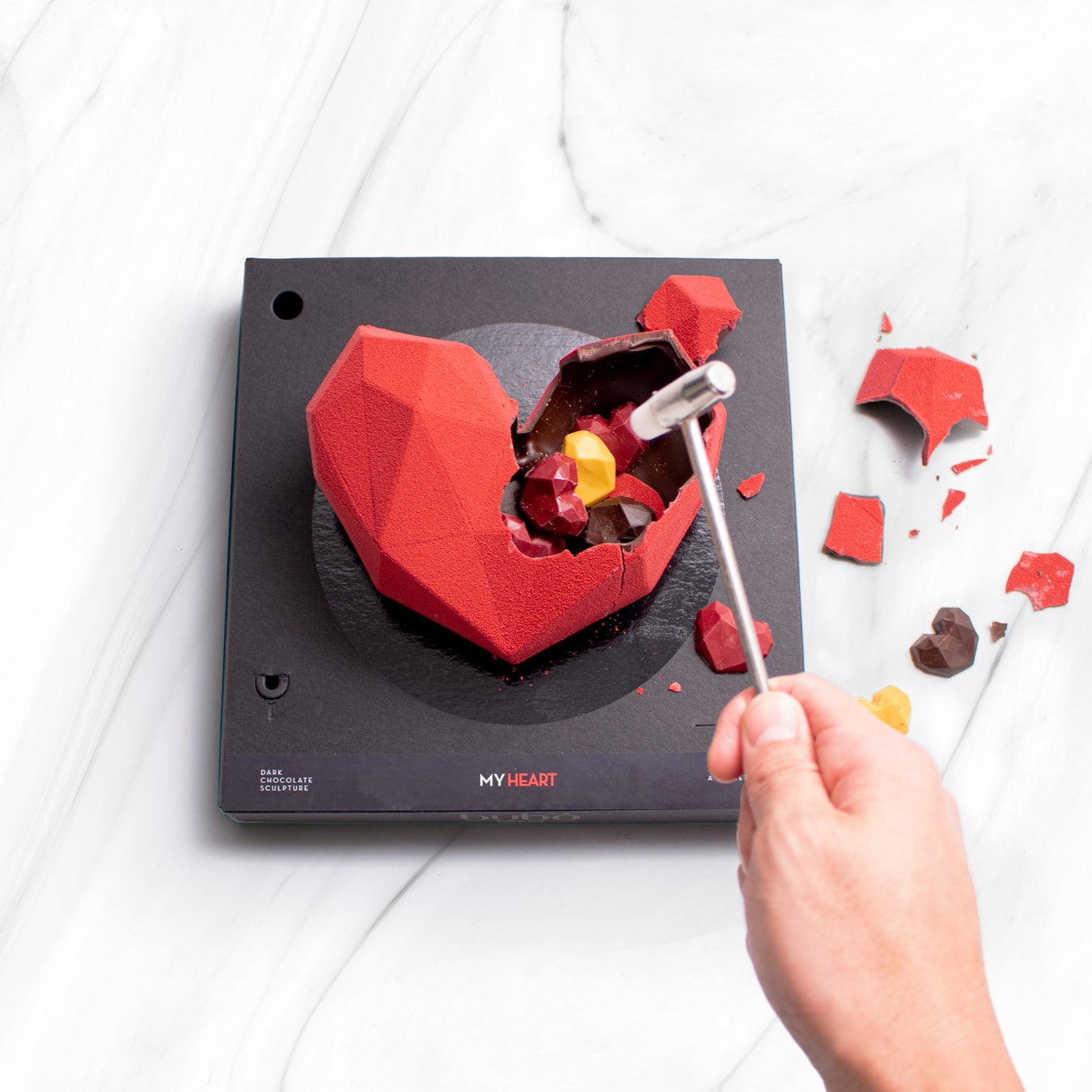 クリスマスを華やかに彩るツリーをモチーフにした、きらりと光るクリスマス限定チョコレート。表面には星型と各国の「Merry Christmas」を施し、ツリーの下からライトを照らすと、星型の光が映し出され、まるでカンデラ(キャンドル)のように美しく煌めきます。チョコレートの内側にはピスタチオやヘーゼルナッツを散りばめ、ナッツとのマリアージュやザクザクとした食感をお楽しみいただけます。付属のハンマーで割ってお召し上がりいただけるので、家族や友人と一緒に楽しんだり、パーティーにもおすすめです。驚きと遊び心が詰まった特別なチョコレートとともに、美味しく楽しいクリスマスをお過ごしください。