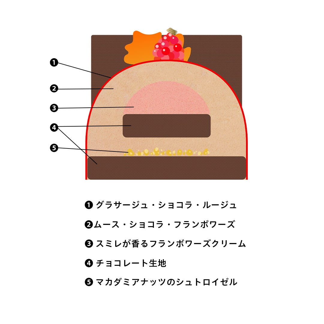 甘酸っぱいラズベリーとなめらかなチョコレートムースが織りなす、数量限定のクリスマスケーキ。鮮やかなルージュ色のチョコレートで包まれたケーキに、ヒイラギやカエデ、クリスマスツリーを象ったチョコレートを飾り、クリスマスの喜びを美しく表現しました。濃厚なショコラ生地とサクサクとしたマカダミアナッツのクッキー生地がアクセントとなり、一口ごとに心躍る味わいが広がります。「Nadal(ナダル)」はカタルーニャ語で「クリスマス」を意味する言葉。大切な方と過ごすとっておきの時間に、ぜひこの特別なケーキをお楽しみください。