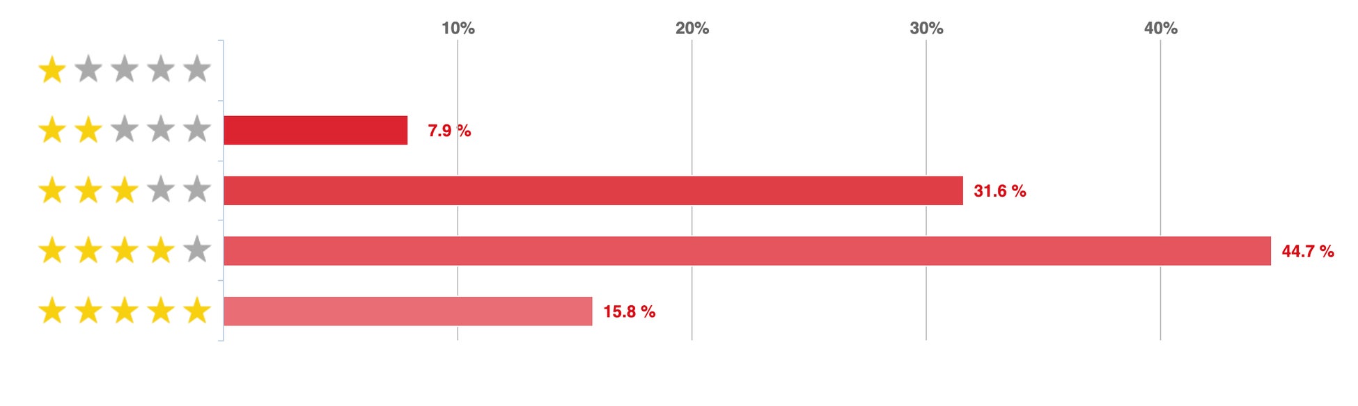 5段階評価でGMO外貨を採点してもらったところ、回答者の60.5%が4点と5点の高評価を付ける結果となった。1点を付けた投資家はいなかったことから、大半のユーザーはGMO外貨のサービスに満足しているということがわかる。また、中間評価である3点を付けた投資家が31.6%いることから、サービスを向上させる余地が残っていると読み取れる。