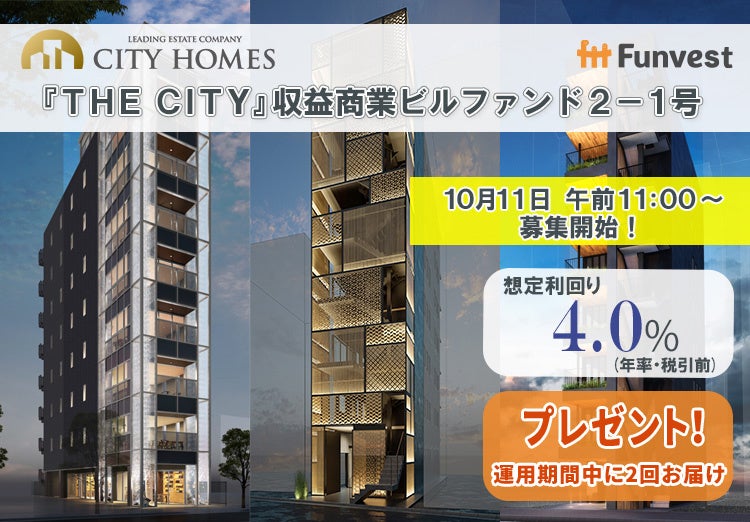 貸付型クラウドファンディング「Funvest」10/11より新ファンド「シティホームズ 『THE CITY』収益商業ビルファンド2-1号」の募集開始