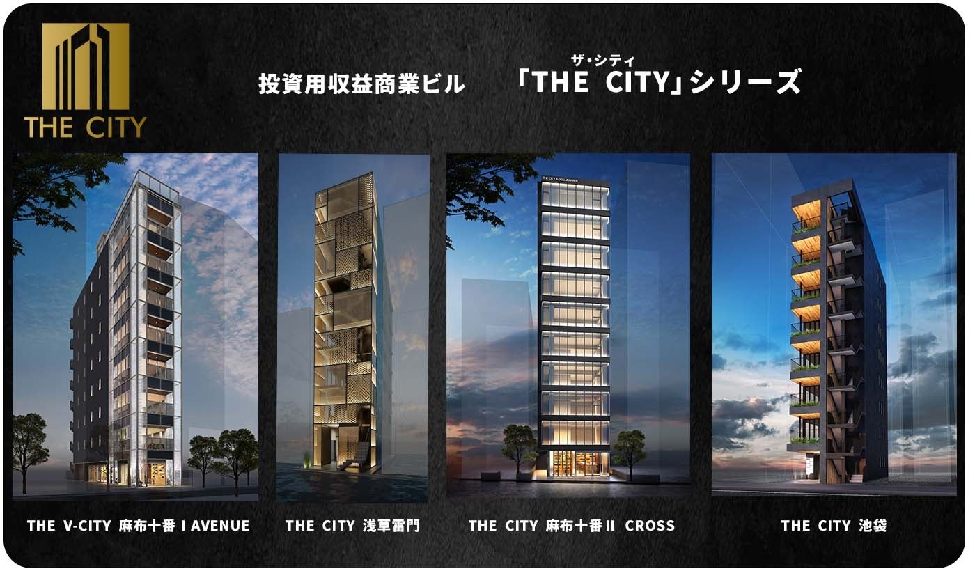 『THE CITY(ザ・シティ)』シリーズは、①土地の価値の高い「都心の駅近好立地」 ②「ガラスカーテンウォール」によるモダンなフォルム ③資産価値の高い「新築」 ④家賃収入を最大化する「収益商業ビル」という特色を有し、立地とビル企画設計の融合による緻密なプランニングで、高い資産性と収益性を実現しています。