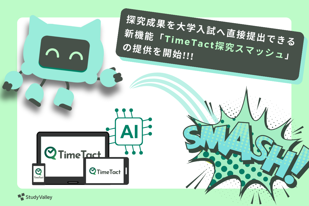 株式会社Study Valley、探究成果を大学入試へ直接提出できる新機能「TimeTact探究スマッシュ」の提供を開始