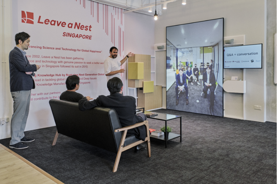概要:2つの空間をリアルタイムにつなぐ次世代遠隔コミュニケーションシステム「tonari」を用いて、シンガポールと日本のインキュベーション施設を常時接続する。同じ場所に集まる機会が少ない環境下でも、視覚・聴覚・第六感等を使った「対面に近い感覚」を生み出すことにより、「心理的安全性」の確保を達成する。(シンガポールと日本のインキュベーション施設を接続 https://lne.st/2022/11/22/tonari/)- テーマ:日本と東南アジアにおける「心地よさ」の最適化
