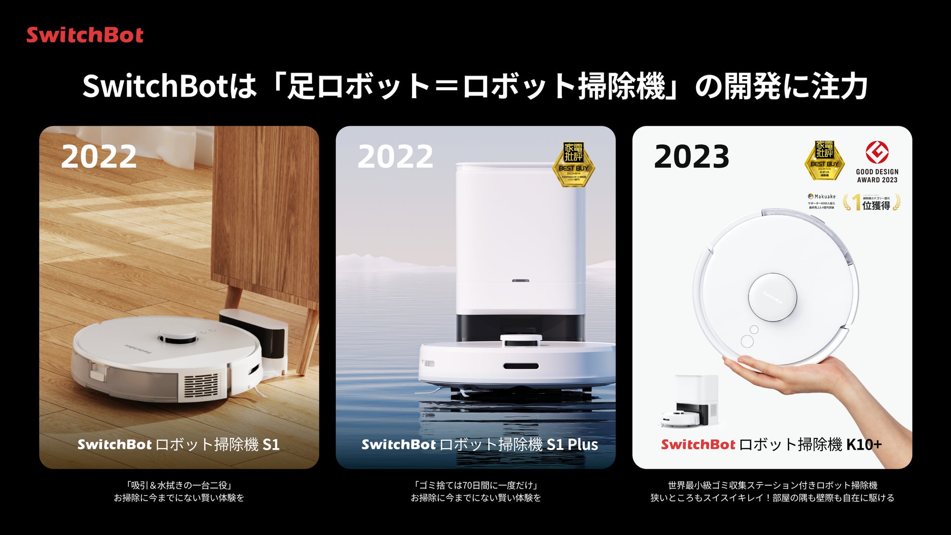 「物理的な作業はロボットに任せ、人は人にしかできない作業に没頭できる世界の実現」を企業の理念・目標に掲げる弊社では、暮らしのシーンに合わせて異なる動作を担う個々のロボットによって「人型ロボット」の働きを代替できると考え、その第一歩となる「人型ロボットの足の部分(移動できる)を担う足ロボット=ロボット掃除機」の開発に尽力。それが今回発表いたしました新製品「SwitchBot お掃除ロボットS10」の発売へと繋がりました。今まで「ロボット掃除機」として発売していた同シリーズ製品も、今回のS10では「お掃除ロボット」と名を改めさせていただきましたのも、このような開発背景と思いが込められています。