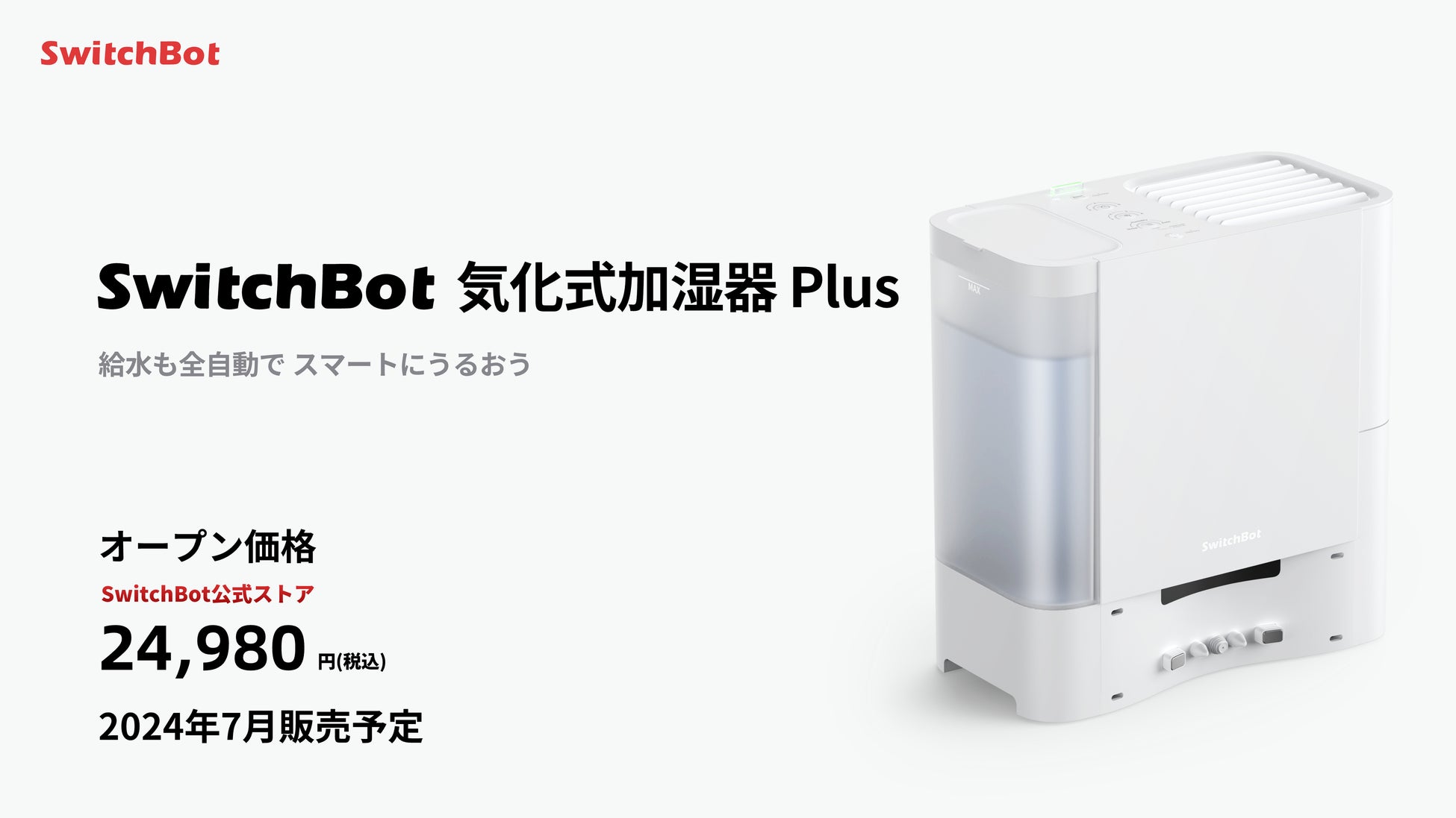 さらに、今回の発表会では、SwitchBot お掃除ロボットS10だけではなく、間もなく新発売されるスマートホームデバイス3製品もご紹介。新製品のひとつである「SwitchBot 気化式加湿器Plus」は、お掃除ロボットS10と連動させることで、加湿器への自動給水が叶う革新的な製品です。