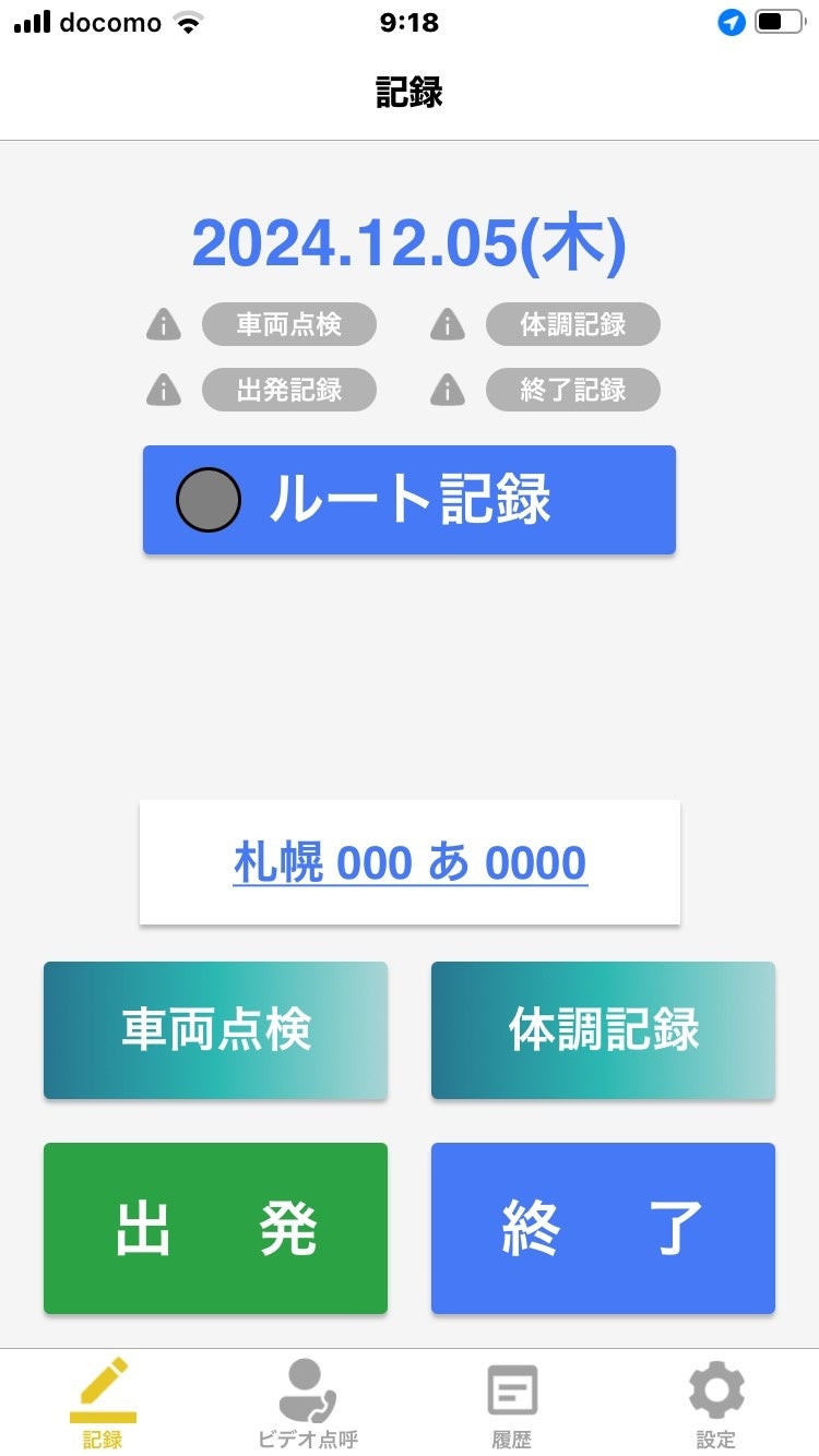 ①「あさレポ」アプリの「出発」ボタンから運転免許証確認画面を表示