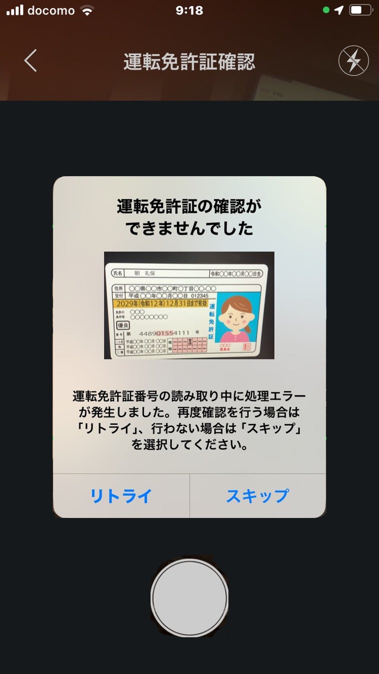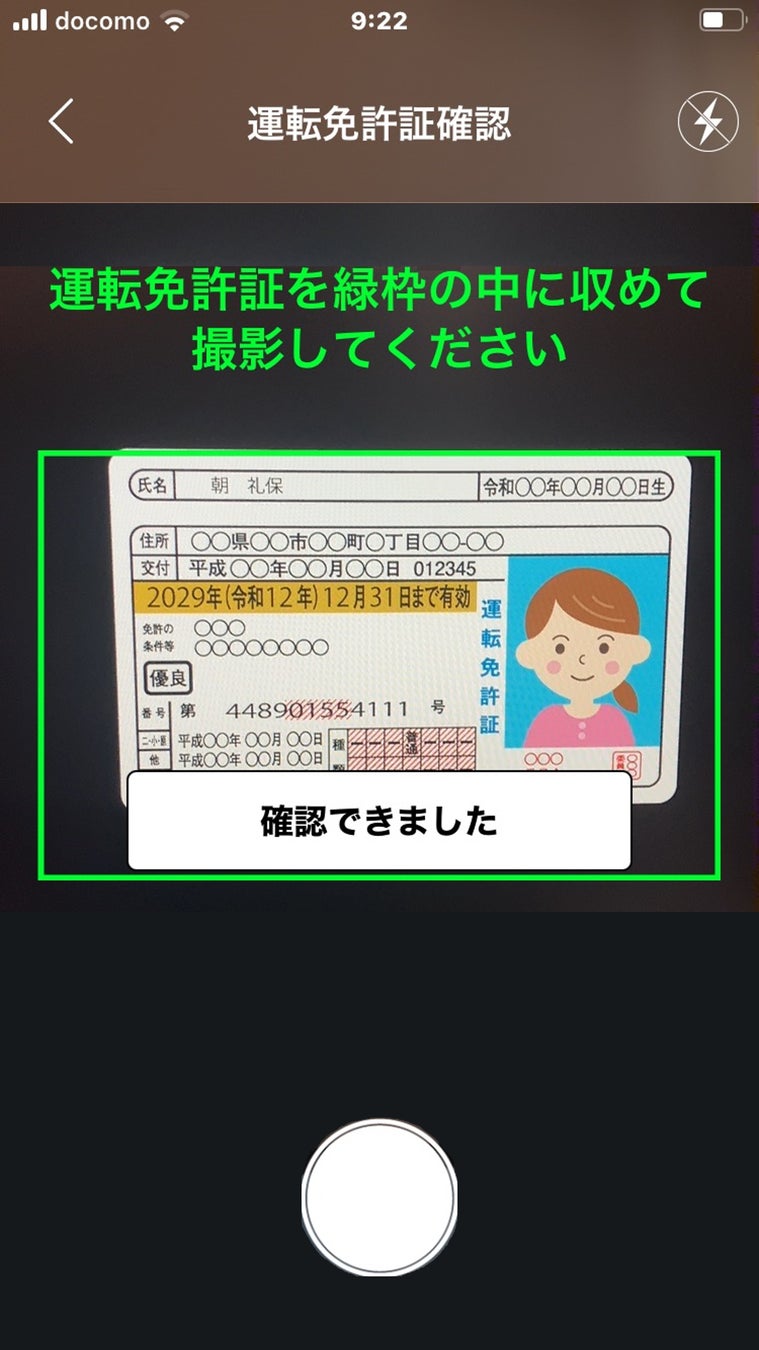 ②運転免許証をカメラで映すことでOCRスキャンにより免許証を自動判別し、運転免許証携行を確認