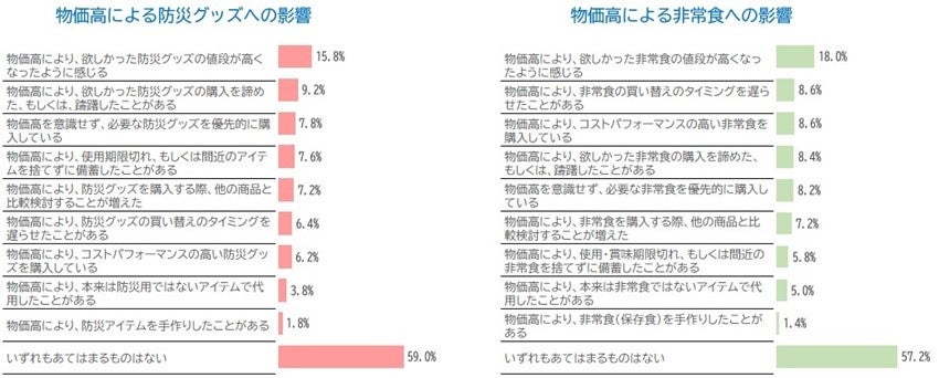 物価高の影響が、防災グッズや非常食の購入や備蓄に関する意識・行動に影響を与えており、物価高を乗り越えるための新たなアプローチが求められていることが明らかになりました。