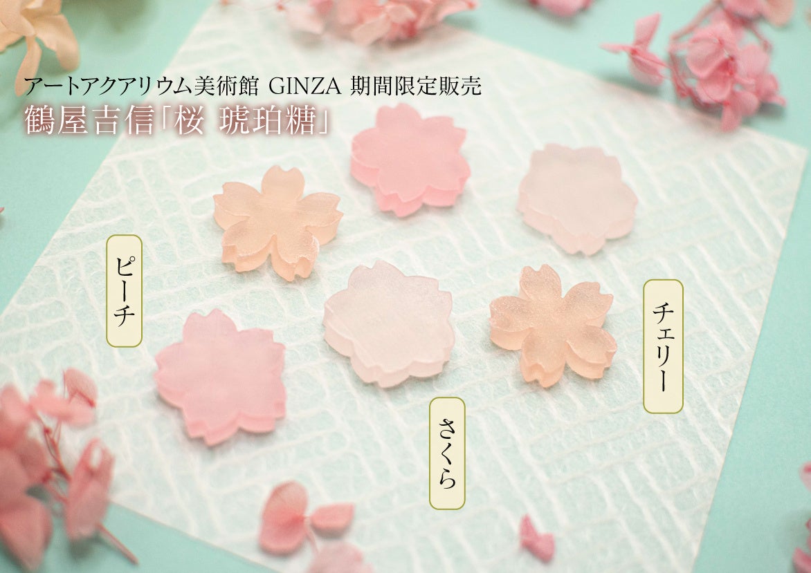また、アートアクアリウムと鶴屋吉信のコラボ商品である、さくら・ますかっと・まろん・ゆずの4種の羊羹を詰め合わせた“IRODORIようかん”も好評発売中。春限定の琥珀糖とオリジナル羊羹、あわせてお楽しみください。