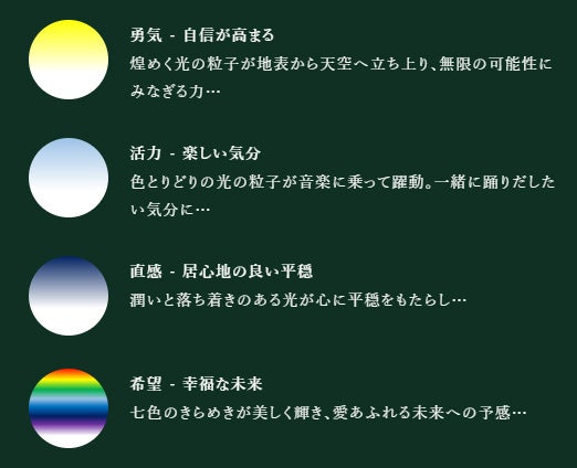 複雑な色彩変化とともに移り変わる場面構成、さらに心に響くサウンドの融合により、まるでミュージカルをのような世界観をお届けします。