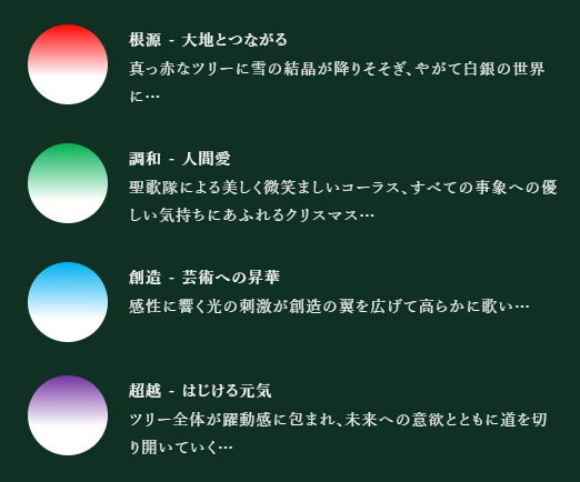 さらに場面ごとに変化する光と音楽との融合により物語性のある光のショーで来場者の皆様を魅了します。