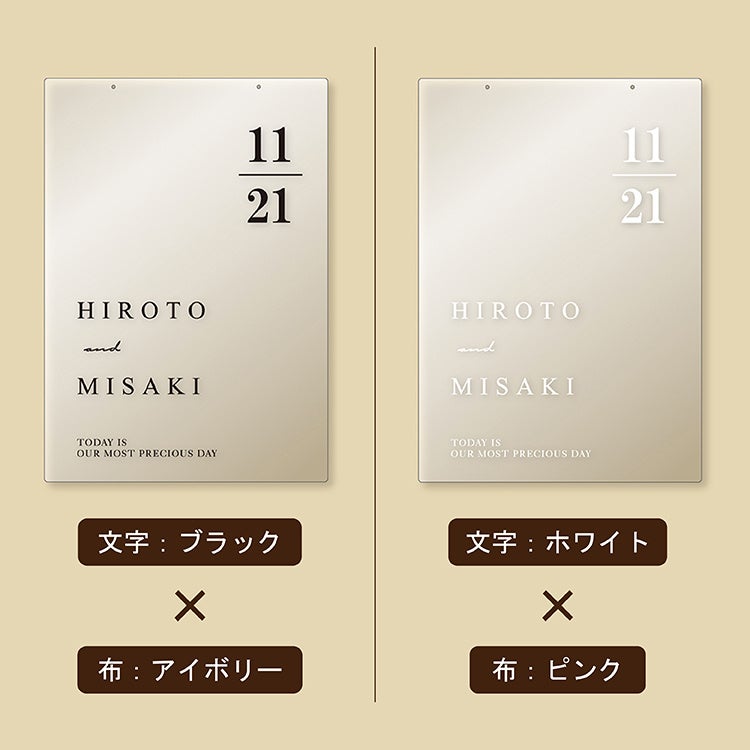 お二人の名前と挙式日が入れられるオリジナル仕様です。