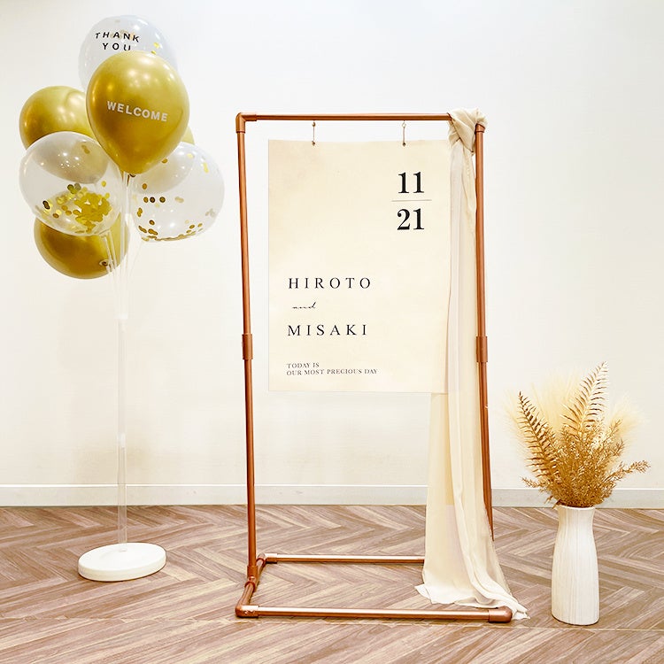結婚式のゲスト受け抜群!これひとつでフォトスポットが完成する【コッパースタンド付】ウェルカムスペースバルーンセットを発売