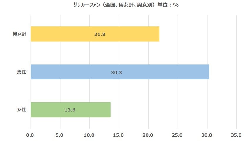 ※日本のサッカーファンの抽出:プロサッカーチームファン、海外サッカーチーム、サッカー日本代表、プロサッカー女子チーム、フットサルリーグのいずれかのチームを応援していると回答