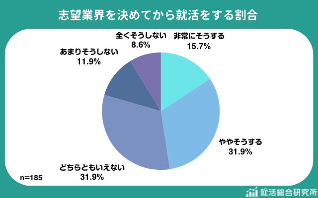 志望業界を決めてから就活を行う割合は、「非常にそうする」(15.7%)、「ややそうする」(31.9%)の合計で47.6%となりました。就活生の約半数が戦略的に業界を絞って動くことがわかりました。