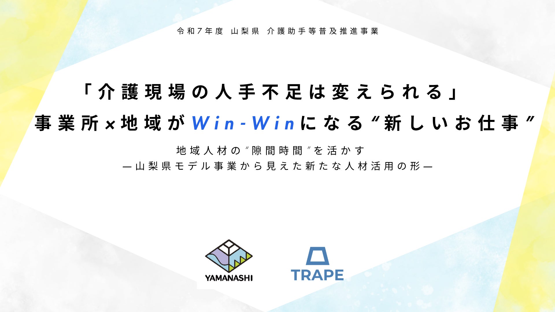 介護現場の生産性向上に関するガイドラインの作成など、2017年から国の施策づくりに関わり介護分野の変革をリードしてきた株式会社TRAPE(本社:大阪府大阪市、代表取締役社長:鎌田大啓)は、ウェルビーイングにあふれた介護事業所の実現を目指し、現場の業務改善やDXに不可欠な「チームづくり」や「課題の見える化・分析」を支援する無料のオンラインツール「生産性向上くん®」の提供と、「生産性向上」「働きがい向上」「リーダー育成」を同時に実現する伴走支援サービス「Sociwell(ソシウェル)」を展開する中で、「令和7年度 山梨県 介護助手等普及推進事業」を受託し、介護助手活用に向けてモデル事業所へ伴走支援を実施しました。