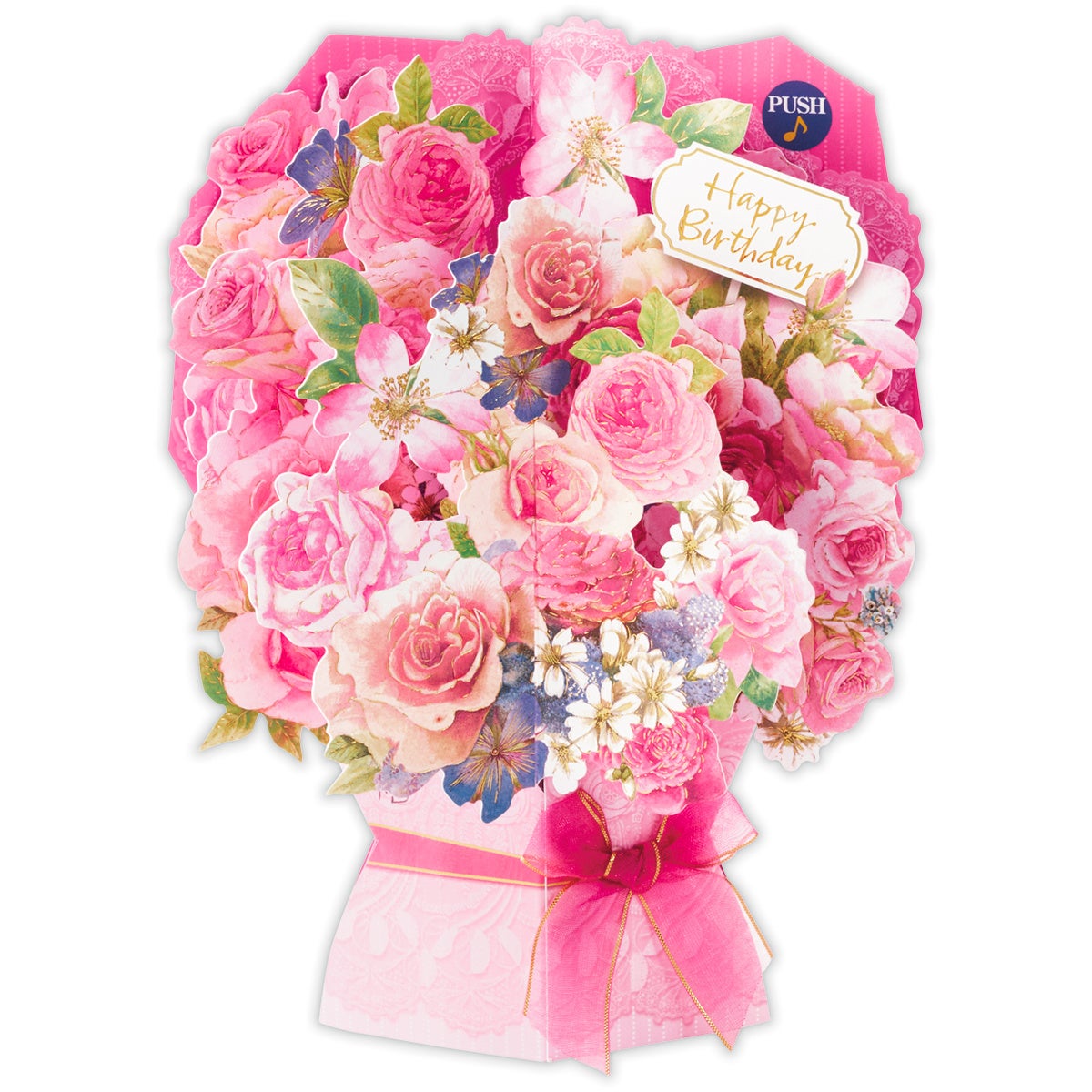 目上の方にも贈りやすいピアノアレンジの「バースデーソング」と「乾杯の歌」の2曲入り。オランダ出身のネイチャー・アーティスト、マロリン・バスティンが描いたエレガントなブーケが、立てて飾れるオルゴールカードになりました。