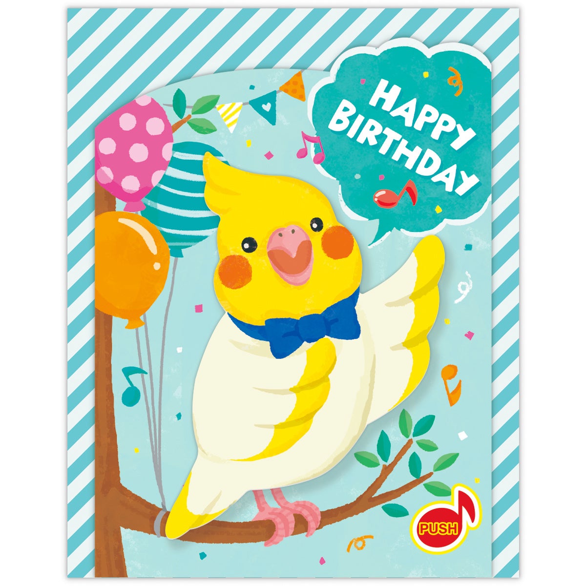 音楽に合わせて動物が動く人気シリーズに新柄が登場。バースデーソングに合わせてオカメインコがぴょこぴょこ動きながら誕生日をお祝いしてくれます。鳥の鳴き声入り。