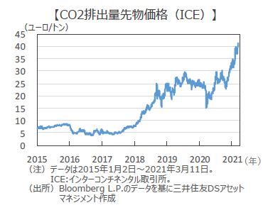 ■欧州ではCO2排出枠取引が普及しており、気候変動対策強化を背景に昨年12月、約15年ぶりに高値を更新し、足元1トン40ユーロ台となっています。CO2排出量トップの中国では2月から排出枠取引の運用が開始されました。