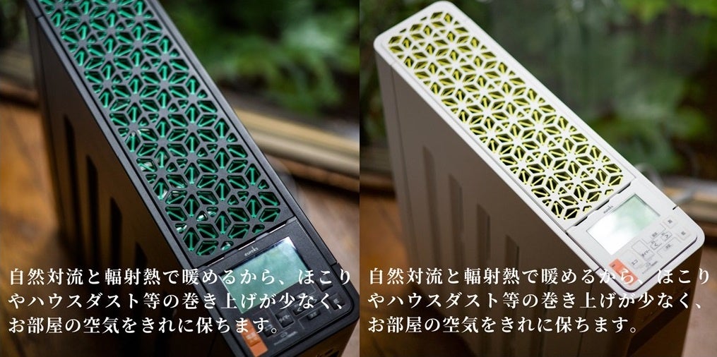 風が出ない電気暖房機(ヘリテイジヒーター)に「御射鹿池モデル」と「ツクモグサモデル」を新たにラインナップしました。