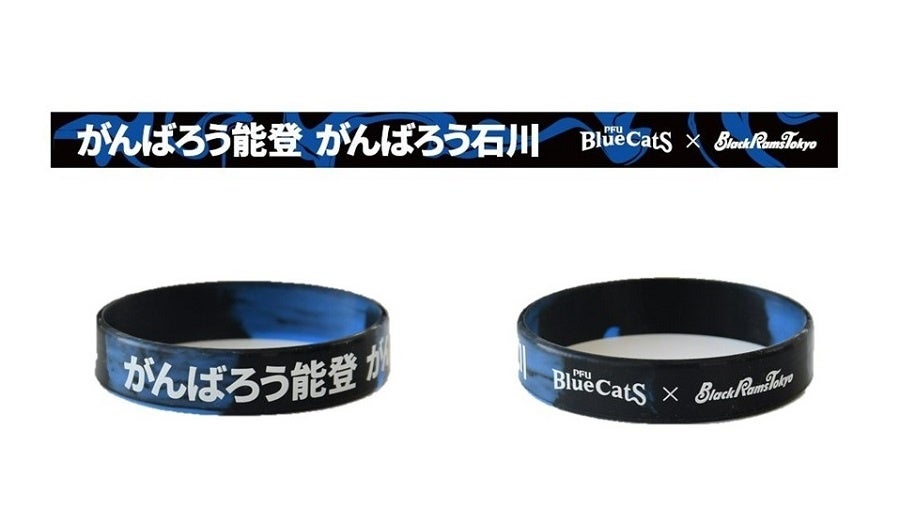 ブラックラムズ東京グッズ販売ブースにて、「オリジナル復興支援チャリティーバンド」を販売いたします。本商品の収益全額を令和6年能登半島地震の義援金として寄付します。