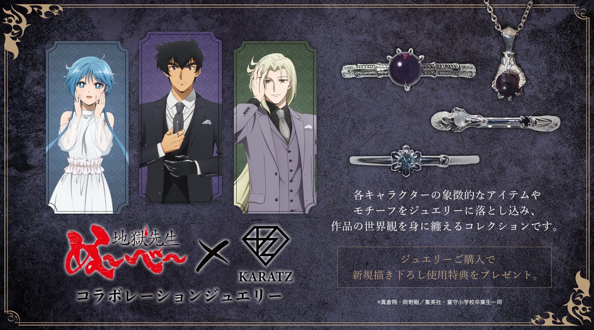 国内最大級の宝石専門情報メディア「KARATZ Gem Magazine」(カラッツジェムマガジン:https://karatz.jp/)を運営する株式会社KARATZ(本社:東京都台東区)は、新アニメ『地獄先生ぬ〜べ〜』とコラボし、ジュエリー4種類、グッズ5種類を発売します。