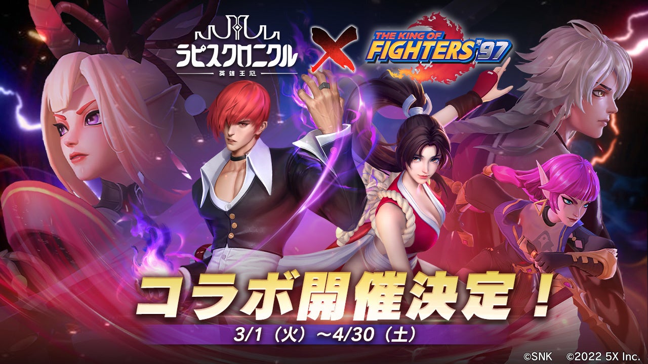 放置型爆速成長RPG『ラピスクロニクル -英雄王冠-』(以下、『ラピクル』)は2022年3月にSNKの人気格闘ゲーム『THE KING OF FIGHTERS '97』(以下、KOF ’97)とコラボイベントを開始することを発表します。