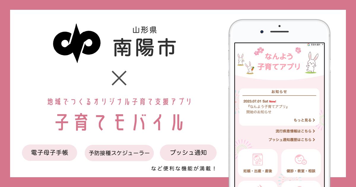 ミラボ、山形県 南陽市で子育て支援アプリ「なんよう子育てアプリ」提供開始