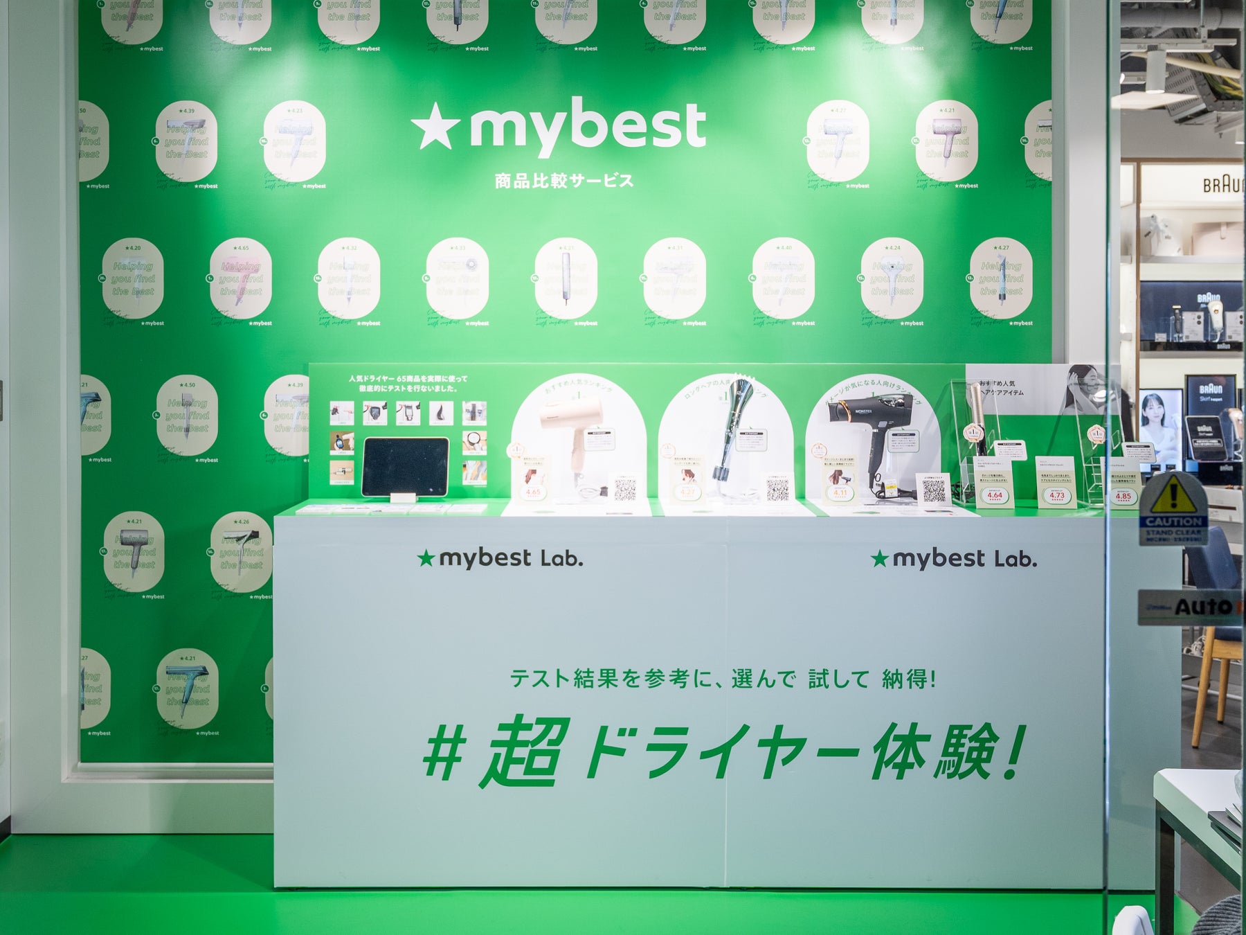 これまでマイベストでは、さまざまな観点で検証した商品比較サービスを提供することで、“選ぶ”領域の課題解決を目指してきました。しかし、Webやアプリ上ではデータで商品を比べることはできても、手にとって商品を比べることはできません。そこで、より自分に合った選択体験の可能性を追求すべく、今回初めて期間限定で商品比較の体験ができる「マイベストラボ #超ドライヤー体験!」を出店することにしました。今回店頭に並ぶメイン商品となるドライヤーは、特に進化の著しい家電製品です。マイベストの商品比較コンテンツとあわせて実際に使い比べることができる体験を提供することで、自分に合った商品選びをサポートしていきます。