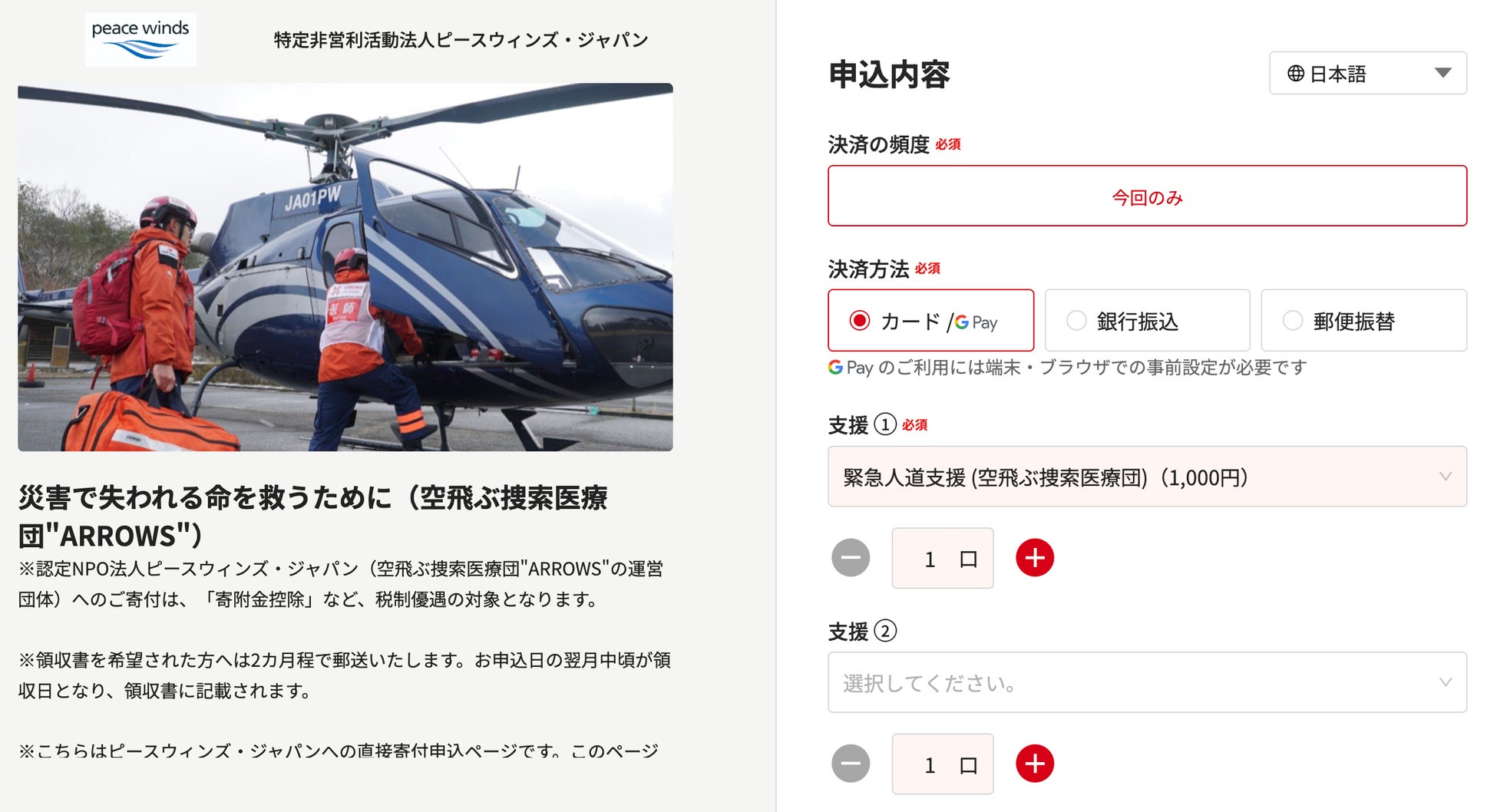 1.決済システムを導入をする手間がかからず、迅速に募金を開始できます