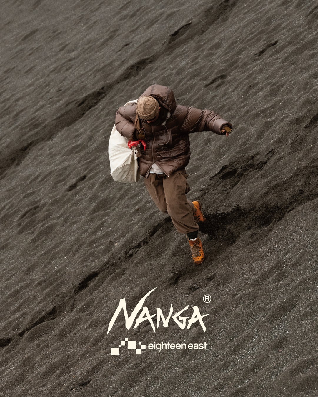 18Eastにとって日本初となる本イベントでは、NANGAとのコラボレーションアイテムだけでなく、今回のイベントのために18East 24FWコレクションから特別にセレクトされたカプセルコレクション「18East x NANGA - WINTER TREK」もラインナップ。