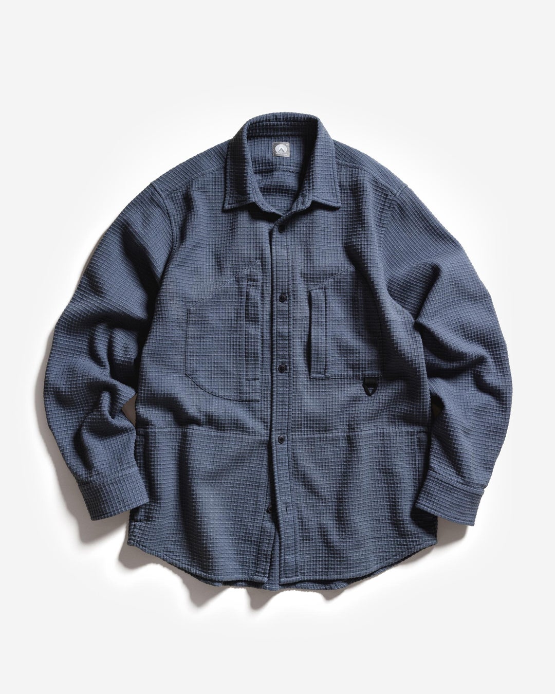 手紡ぎのコットンで作られたエクスプロードリップストップ素材のユーティリティシャツ。