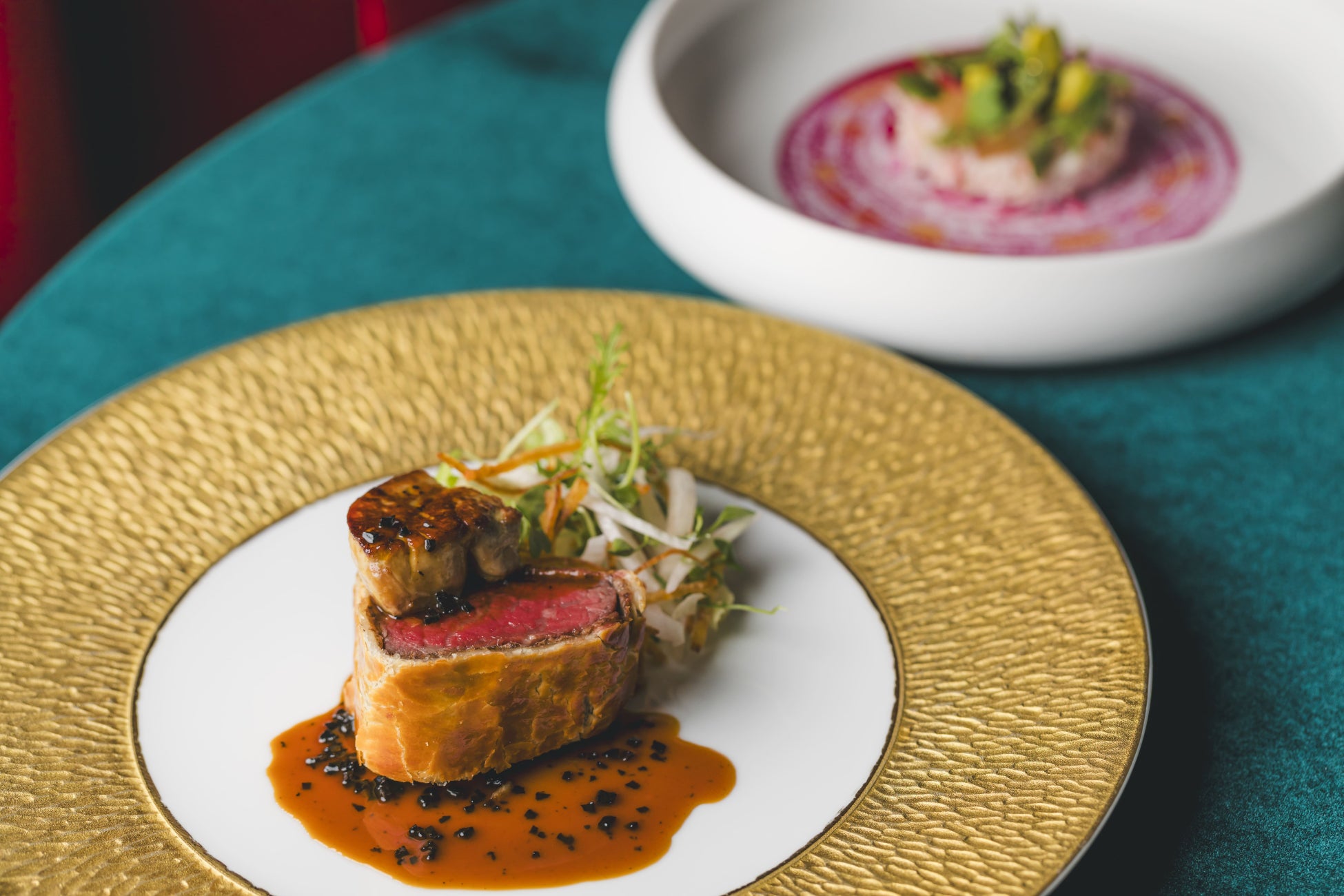 世界遺産の清水寺を臨むホテル最上階メインダイニング「グラン カフェ フォション」では、2024年12月1日~12月25日の期間中、クリスマス特別メニューをご提供いたします。ディナーメニュー「ノエルシェフ」では、前菜にズワイガニを使用しつつ、ピンクの彩り鮮やかなプレゼンテーションで魅せる胸躍る一品が登場。メインでは近江牛をパイ包みにして焼きあげ、フォアグラとトリュフという豪華食材を添えて、クリスマスの高揚を演出してくれる贅沢な一品へと仕上げました。