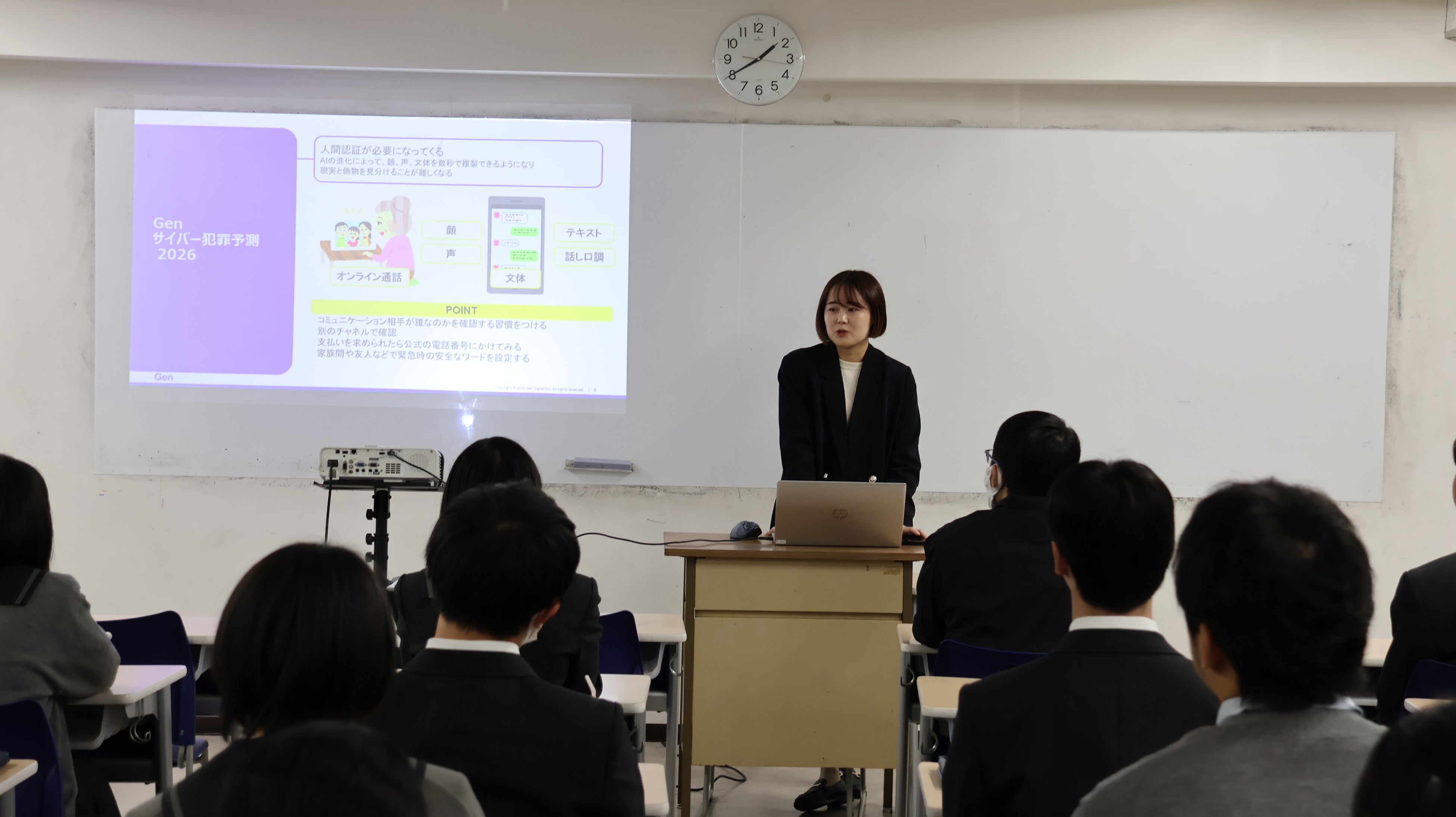 消費者向けサイバーセーフティブランドのノートンは、2025年12月19日(金)に浦和麗明高等学校の学生を対象とした、インターネットの適切な利用方法やAIリテラシー強化に関する特別授業を埼玉県警察と連携し、開催いたしました。