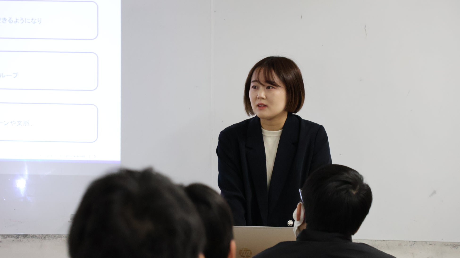 授業では広報担当者が登壇し、AIが技術革新をもたらす一方で、悪意あるサイバー犯罪者にとって新たな攻撃手段となっている現状について説明しました。