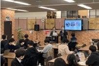 右写真:2023年2月7日(火)、学校法人角川ドワンゴ学園N高等学校・S高等学校 横浜キャンパスにて、クイズを活用したサイバー犯罪対策に関する特別授業