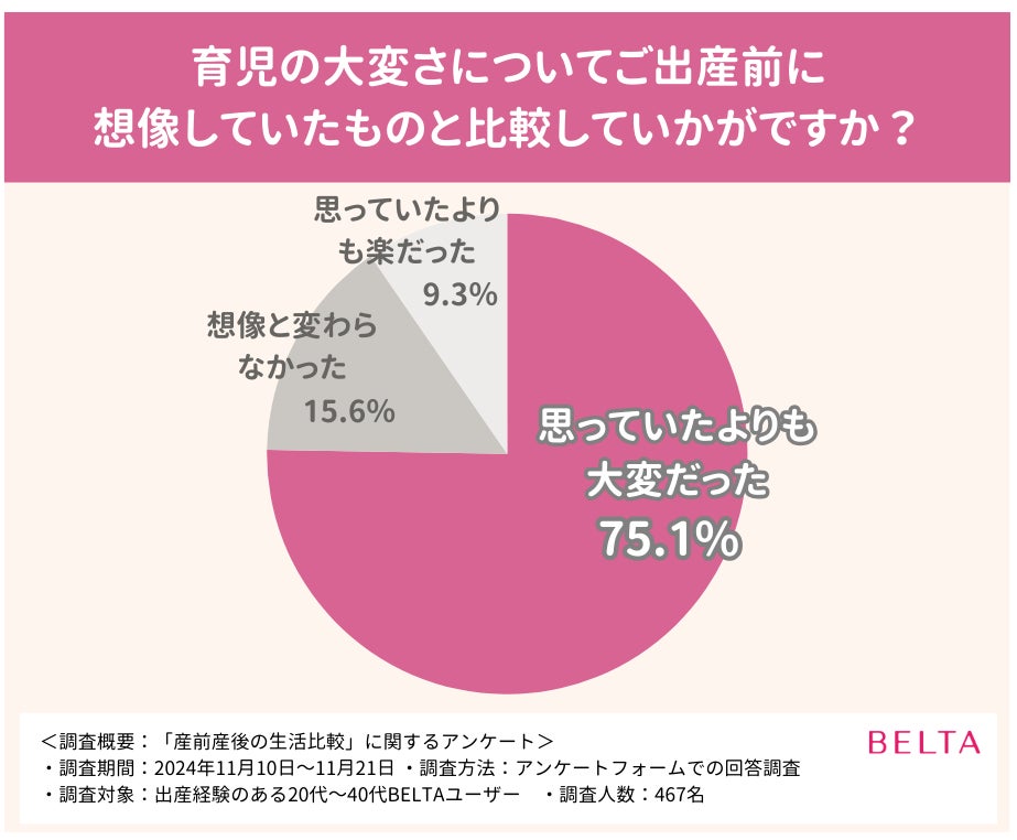 育児について「出産前に思っていたよりも大変だった」と感じている人は75.1%