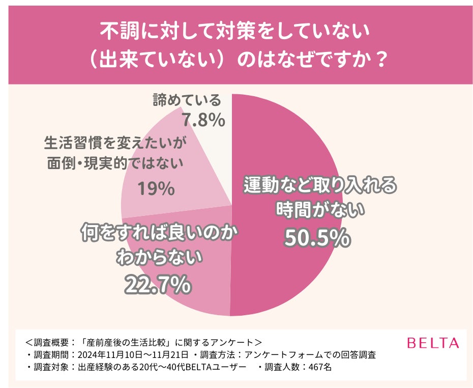 50.5%の人が「時間がない」ため産後の不調に対する対策が出来ていない