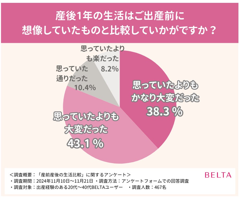 産後1年の生活は、出産前の想像と比べ「大変だった」と感じている人は8割以上